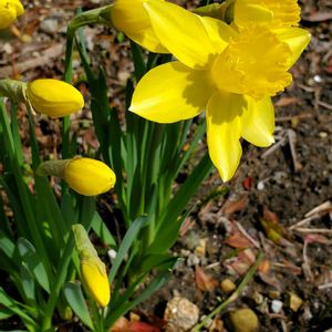 『今日もお疲れ様です』 ちょこんと下を見て、挨拶してるようです💛 やわらかい春の陽をうけて咲く、すいせんのお花です🤲´- ヒガンバナ科の属のひとつだそうです。