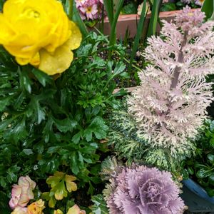 🥀寄せ植え🥀 葉牡丹がニョキニョキ 暖かさに蕾まで付けたのに また冬に戻った?
