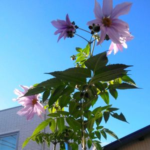 おはようございます☀️ 青空に映えて 皇帝ダリア 咲いています🌸💕🌸 親株が咲かなくなったので一昨年、子株を作りました🌱 去年は🌿だけでした… 今日も安全にお過ごし下さいね☘️🍂