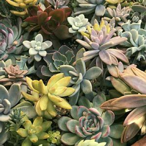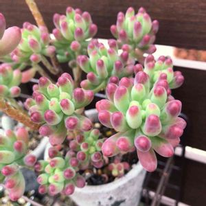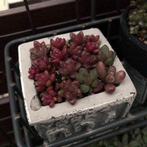 適当に葉ざしで増えた子たちを大きな鉢に入れていたら紅葉して色とりどりに、大事に育ててる子よりきれいかも…
