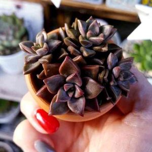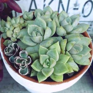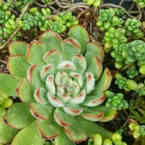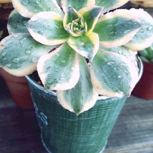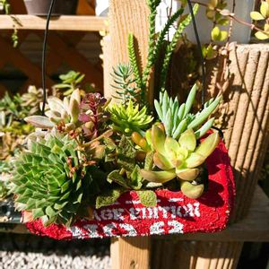 赤いリメ缶に寄せ植えした子達🌱 雨ざらしで台風もへっちゃら😏✨ ぷりんぷりんでかわいいけど 雨あたりすぎて 紅葉が進みません😞