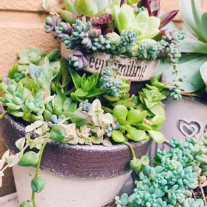 今日はお仕事お休みー!(*≧▽≦) 2年ぐらい前に作ったリメ鉢の寄せ植え(*´∀`*) 猛暑でボロボロだったとこに、 生きてる子はそのままで♡ 穴の空いたとこにポイポイ箱から拾って 穴を埋めました。 紅稚児も入ってるから、秋に紅葉してくれればいいなぁ🤗