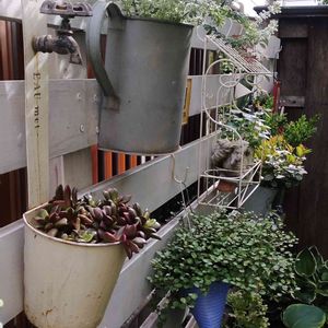 雨晒し、おひさまガンガンの子の方が 健康的な子になると味をしめて 場所を変える女🤪 砂利のとこ雑草ボーボー🤫 ここなら毎日窓から見える 吉と出るか凶と出るか… どんな風に変わるか変化が楽しみ😌 でも室外機の上に 物置くのはダメなんだろうなぁ… 旦那に怒られそ…🙄