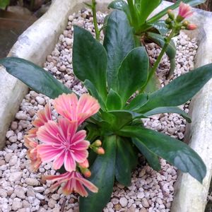 枯れかけてたレウィシアをお庭に出したらお花が咲き始めました