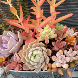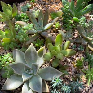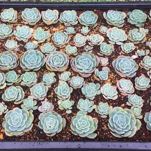 2021/10/09 ぶっ込み鉢&トレーの七福神。 無事夏を乗り切ったチビ七福神達 置き場所問題で単品管理は無理😅 大きいトレーに植え替えた! 遮光なし&雨晒しでムッチリ♪ 葉数は多いけど大きい子でもまだ5cm もう少し可愛くしなきゃダメかな? 来春フリマアプリで販売予定だけど こんなのでも欲しい人いるかな?
