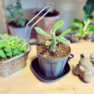 こんにちは☁️ 今日は[○○じゃない使い方]なお写真です☺️ᩚ アロマティカスを冬の間室内管理してるのですが、のびのびになってたので、挿し木チャレンジしてみました。(時期外れかもだけど!) こちらはプランターじゃなく、 DULTONのフライバスケットです。 昨年買ったDULTONの福袋に入ってました。 真ん中のアデニウムちゃんには 受け皿にDAISOのオーブン食器。 取っ手付きの食器を植物用に 使用してみました! キャンプ用品可愛くて好きなんですが、まさかの本人はインドア派なので(笑) フライバスケットのアロマティカス、上手く育ってくれると良いなぁ☺️