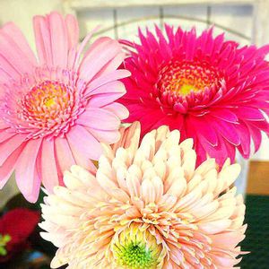 昨日、娘が自分の好きなガーベラ3色を買って来ました♪