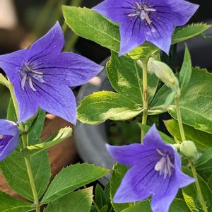 石川、小松市で40.3℃‼️ 金沢市でも40度にはとどかないものの猛暑です🥵 お花は涼しげに🎐 我が家の鉢植えの💚桔梗💜 毎年咲いてくれますが、今年1本だけやけに背の高いのが出てきて🤔不思議に思ってたら…蕾が出てきてわかりました😊 こぼれダネで成長したコムラサキでした✨😆(2枚目) 抜いてしまおうか🙄と思いましたが…暫くこのまま寄せ植えみたいに様子をみます