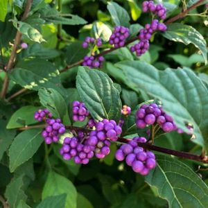 「小紫 コムラサキ」 毎年、実をつけてくれますが ことしは少なめです。 10年以上ですが、放任、剪定で 大きくなりません😅