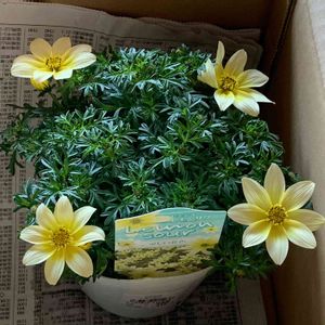 ビデンスレモンサワー 花壇に植える前にとりあえず鉢に植えて育ててみることにしました。