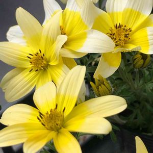 《ビデンスレモンサワー🌼》 レモンホワイトXイエローの涼しげで爽やかな花色。 こんもりとした株にたくさんの星形の花をつけます。 細い濃緑の葉とのコントラスが美しい。 単品でも寄せ植えでも大活躍。