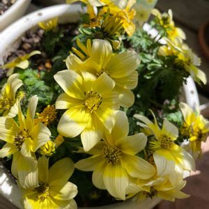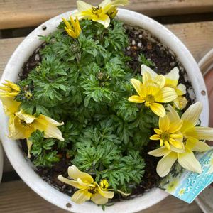 こんばんは〜ひさびさに寄植えしました♪昨年も使ったビデンスレモンサワー🍀やっぱり爽やかで可愛い💕