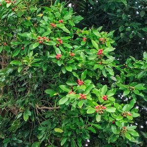 赤い実がなる季節ではありますが、クロガネモチではない赤い実を付けた木は何でしょね🤔 下に落ちてる実も見た事無いなぁ🤔 ⋯タラヨウ(名前だけ知ってる)の木みたいです。 暖地の木らしく、関東でも植栽されているそう。 花はどんなのか楽しみ💕