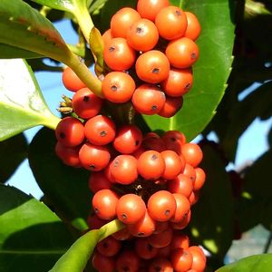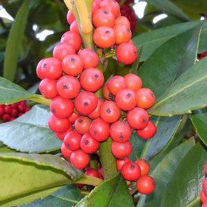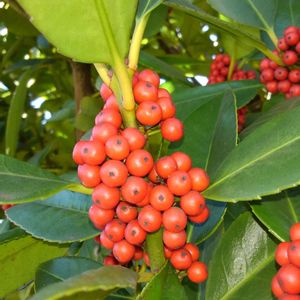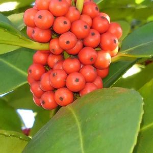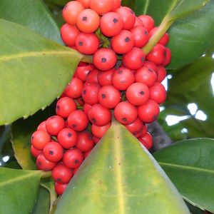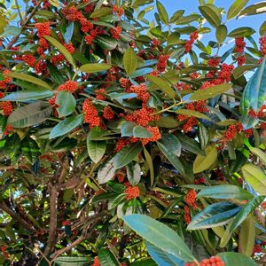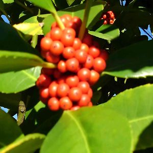 茅葺き屋根の山門とイチョウの木で有名な 武蔵五日市の広徳寺 裏庭には大きなタラヨウの木があります。 赤い実が鈴なり♪