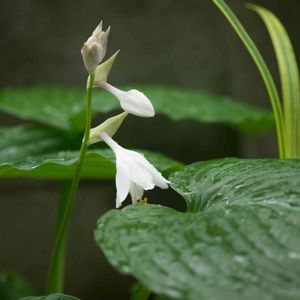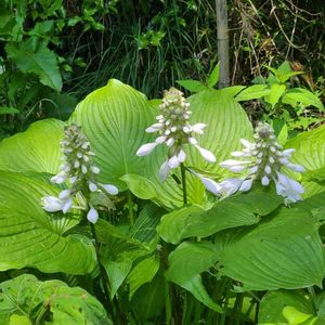 🏷青い花で梅雨景色2022 🏷金曜日の蕾たち 淡紫色のオオバギボウシの花が咲き始めました。 梅雨の雫が綺麗です💙 園芸種のギボウシよりも、葉🌿がとても大きいです。 キジカクシ科 ギボウシ属