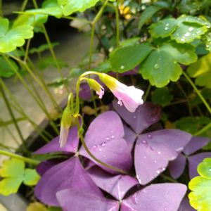🌿💜オキザリス・トリアングラリス💜 咲きました~🤗 この🌿💜オキザリス・トリアングラリス大好き❤なので増やしたいです💞 イチゴ🍓ちゃんまたまた赤く🍓なってきたので明日、収穫😋