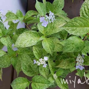 やっぱり雨が続きます😓☔️ アジサイだけは嬉しそう🤣 1番始めにお迎えしたヤマアジサイの九重山💙今年も綺麗に水色が出ました✨葉っぱも散り斑が入ってます😆
