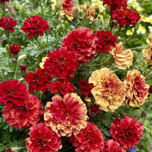おはよ〜ございます☁️ モリモリ〜♥️♥️♥️ スマイル〜😍🤗 花壇のマリーゴールドちゃん♥️ 凄いです♥️ 今日もマイペースで🍀 頑張りましょう💪fight〜📣 穏やかな一日になりますように🫶