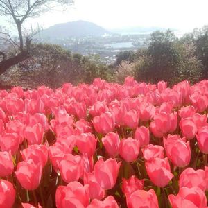 🌷と私の町 向こうに周南コンビナートが見えます。 永源山公園にて 3/23 15時02分撮影