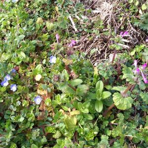 こんにちは😊 いつもの散歩道 農道の道端にオオイヌノフグリが一面に広がっています🐶