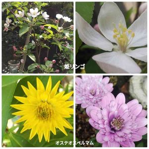 姫リンゴ 徐々に咲きだしてます。 咲いたのから受粉しました😊 オステオスペルマム八重 黄色は去年のを挿し芽したのです。 ピンクは2年目の株です。 おはようございますm(_ _)m 今日は☀マークです。