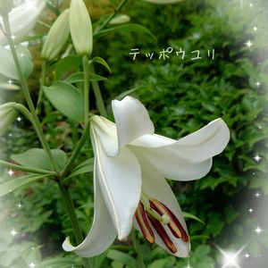 鉄砲百合咲きました♪ 空からの贈り物🎁 野鳥の落とし物😆