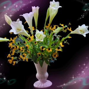 •*¨*•.🤍¸¸☆*・゚•*¨*•.¸¸🤍☆* テッポウユリを頂いたので庭に咲いているルドベキアさんと一緒に飾ってみました𓂃𓂂ꕤ
