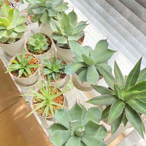 ほぼほぼ1歳のアガベ実生組♡ お外デビューさせてみることにヽ(o・ω・o)ノ♪︎ まずは朝日がちらっと差す場所で。 来週また最低気温が低い日がありそうだけど、 大丈夫かなぁ´・ω・) ←親バカ 縦列、左から ☟チタノタブルー ☟オテロイ ☟イシスメンシス 横列、奥から ☞5/3播種(約11か月半) ☞4/3播種(約1年と半月) ☞3/3播種(約1年1か月半)