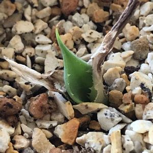 12月上旬におまけでもらった、謎のアガベのカキコ♡ 葉もつるんとしてて、根っこも生えていない状態だった。 一度、1枚しかない葉がカラッとなってしまったので、 抜いてみたら、根が1本生えていた。 芯がまだ生きていそうだったので、もう一度植えてみる。 先月中旬から腰水にしてみたら、それが正解だったのか、 トゲトゲのある葉がー‼︎(*´艸`)