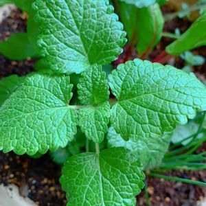 本日10時撮影、レモンバーム ハーブティーに爽やかな香り 葉っぱのグリーンも目に優しいですね🌿