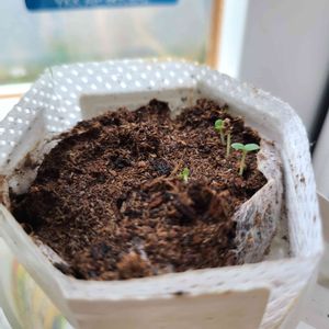 5/26✨Up💖𓂃𓈒 𓂂𓏸 芽が出た ☕️ドリッパー栽培💕 🎁(〃ฅฅ🎀´˘`ꕤ)🎁 間引いてあったし…(๑˃̵ᴗ˂̵) 🐞サクッと🧺植え替え🍀