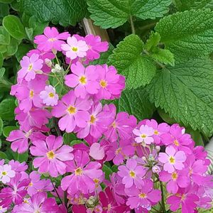 今日のお花 レモンバーム🌿 こぼれ種のレモンバームがもりもりで凄く元気です🍀 サクラソウのピンク色が映えますね🌸 🏷乙女色クラブ 🏷春色ピンク 🏷yu&ゆうクラブ