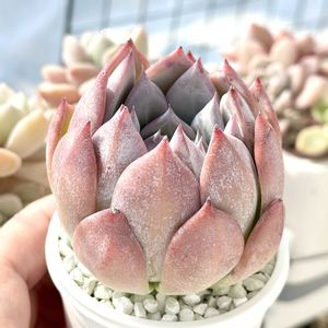 午前中は雨が降らないようなので、多肉たちを風と曇り空に当てています。 今のところ梅雨によるジュレはなし。 ふっくら感も失われず。 火曜から雨が降らないようなので、そこでリキダスを‼️と思い、全ての鉢に追加オルトラン。 ワイルドコロラータ。 2年前にヤギさんの多肉園で(佐賀県。ビニールハウスの中で販売されてます)。 これ、350円だったんですが、すごくキレイなんです✨ ウチのコロラータチームの中でも上位😌 何がワイルドなのかはわかりませんが、葉が少しうねっている所かな?と勝手に思っています😅