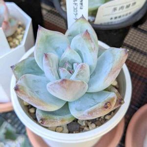 今晩は🎵 本日も仕事と晩御飯を終え 一休み〜😊 ☘️☘️☘️☘️☘️☘️☘️☘️ 10日前に 我が家に来た 🌟札なし韓国苗 多分…ワイルドコロラータ 根は、✂️されているので 根の部分を確認したけど 状態もよく すぐに土の上において管理。 窓際で管理した後 裏を軽く覗いてみたら 根が出てきているので 安心して 軒下に出した。 他の韓国苗も 全て発根していたので このまま、 もう少し根がつくまで 管理したら 涼しい日に水をあげよう🚰 今日は大量の スリット鉢 9cmのサイズが届いたので 秋には小苗のエケさんを 移動予定中❗ やはり、 この苗も色が美しくって 白い粉を纏っていて 神秘的なブルーグリーンに 赤い縁取り🥰💖