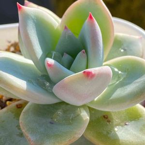 こんばんは🤗🌟 こちらは今日も晴天☀️.° ただちょっと風が冷たかった🍃 今日は1日多肉事٩( 'ω' )و 🏷ムッチリぷくぷくの日 昨日行ったぷくぷく多肉さんのエンジェルフェンガー ピンクに頬を染めたようでめちゃ可愛い (*´`)♡ 左は芽吹さんの苗 もぎもぎに失敗し、一回り小さくなりました😭