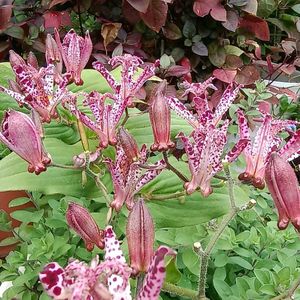 🍀おはようございます🍀 ホトトギスが開花中です♬ ②③赤い小菊も蕾が膨らんできました😊 ④種蒔きジニアはまだ元気! ⑤シュウメイギクがポツポツ開いていますが なかなか一気に開いてくれません…
