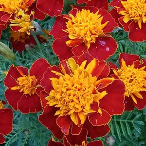 🍀おはようございます🍀 こぼれ種からのマリーゴールド♥️🧡 あちこちで鮮やかな花色が 目立っています😊 夏に花がらから種を採り、 蒔いたジニア♥️💛 また咲き始めています🎶