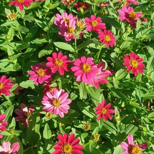 🍀おはようございます🍀 時期をずらして何回か種蒔きした種蒔きジニア🧡🩷💛 色濃くなり満開になりました🎶 5枚目はエキナセア パウワウ ワイルドベリー🩷 初夏に咲かなくて心配したけど 今頃から開花中♬ 昨年も冬まで咲き続けたけど… こんな時期から咲くエキナセアなのかな🤔