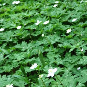 先日投稿の子の全体像✨ どんどん伸び、30cm程に😆🎶 追記)アネモネ野生原種小型。春にたくさん咲き、秋まで少しずつ咲く。植えっぱなしで毎年楽しめる。寒さに当てないと花芽が付かない。極端な乾燥ダメ。 学名Anemone Sylvestris キンポウゲ科 アネモネ(イチリンソウ)属 近縁種)イチゲ、シュウメイギク、ニリンソウなど。 花びらにみえるのはガク。 芳香がある、とあったけど、うちの子は香らない😅