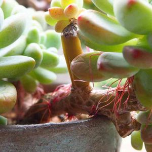 今朝洗濯物を干してたら発見👀⚠ 一株だけ気根が出てる😵 土を足すだけの応急処置じゃ駄目かな😅