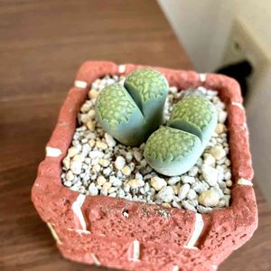 いつの間にか脱皮完了していたリトープスさん。私は枯れ葉取りもしていません。他の多肉と同時に水やりしていたくらい。手がかからず良い子☺️💕3個から6個になりました🎶緑福来玉で合っているのか??だけど増えて嬉しい😆