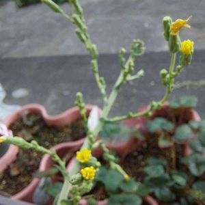 プランター栽培してるロメインレタスに黄色い蕾·花が咲いて💛もう葉は固くて食べられない😂 🏷️金曜日のつぼみたち、🏷️ちっちゃいものクラブに参加します❣️