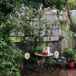 ご近所さんのお庭🇳🇱 ちっちゃな水路や運河にお庭が面していることもままあるオランダのおうち。こちらのおうちは生垣を運河沿いのフェンスにしつつ一部を開けて川床風?にバルコニーを作りアイアンチェアーとベンチを置いて頭上にはバラの🌹パーゴラを作成中。ここでいただく紅茶とかもう最高でしょうね😊憧れます✨