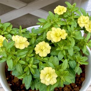 サントリーフラワーズ ミリオンベル ハンディ こんもりレモン🍋 新しい子をお迎えしました♡ とりあえず深さがあまりない6号鉢に植え付け💛✨ 淡いレモンカラーが私好みです😊💕