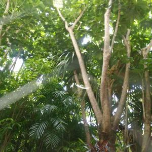 名護市のとある蕎麦屋さんの窓からの景色がジャングル過ぎて家族そっちのけでひとりで興奮ε=ε=(ノ≧∇≦)ノ勿論家族からは冷ややかな目(ーωー) だってだって❗目の前にブラッサイアの目通り60cm 越えの大木があるんですよ😍