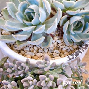 今日から旅行行ってきます♪ 関西天気荒れるみたいだからベランダの多肉が心配💦 ビニールで雨よけ作ったけど 風が強く吹いたら飛ばされそう💦 ちょい蒸れそうなのも心配💦 写真は縁どりか赤くなってる寄せ植えのジャシリー