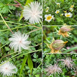 チングルマ(珍車、稚児車)バラ科 チングルマは「草」ではなく「木」です。 幹がマッチ棒ぐらいの太さで10年ぐらいたっているそうです。 チングルマが「木」だなんて驚きですが、顕微鏡で見ると👀ちゃんと年輪も見られるそうです。 昨年栂池自然園へ行った時にゴンドラ駅に置いてあった写真ファイルの花図鑑で知りました。