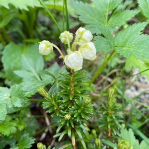 アオノツガザクラ(青の栂桜) ツツジ科 葉の形が針葉樹のツガ に似て花が黄緑色をしているのでアオノツガザクラ(青の栂桜) 身の丈10〜20cmしか伸びないが、立派な木の仲間。