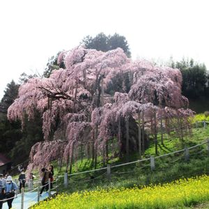 お花見🌸お出かけ〔4/18〕✽.。.:* 1 福島県の三春滝桜.。.:*🌸 樹齢1000年以上と推定される国指定天然記念物のベニシダレザクラ で、日本三大桜のひとつに数えられ ています。薄紅色の小さな花を枝いっぱいに咲かせ、その姿が滝のように見えることから名がついたとも言われているそうです🌸 とても大きく立派な桜の木…👀 満開は先週くらいだそうでしたが、まだまだ見頃で、綺麗に咲いていました…ただお花はピンク色から白くなったようです♡ でも、まだまだお花も散らずに、葉っぱもまだでしたから、とても感動‼︎感激‼︎見事でした(*˘︶˘*).。.:*♡ 菜の花も、鮮やかで綺麗でした💛 🏷️ 19日はピンクの日! 🏷️ 幸せの黄色いお花 🏷️ 心にメローイエロー 🏷️ 太陽が暮れた季節a☀️ 🏷️ 2025年桜さくらサクラリレー 参加しまーす♡