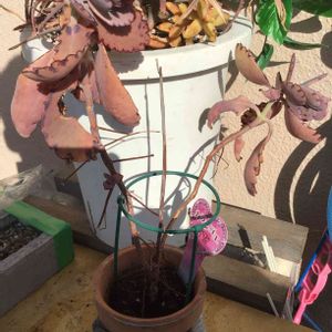 カランコエのリンリンです。カランコエは難しそうで敬遠していましたが、可愛いし、お花屋さん応援したいしで育てることにしました。胡蝶の舞が元みたいですね。葉のピンク、可愛いです。